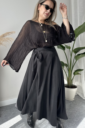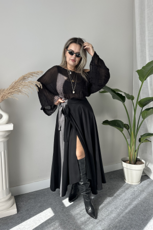 Siyah Sandy Drapeli Maxi Etek