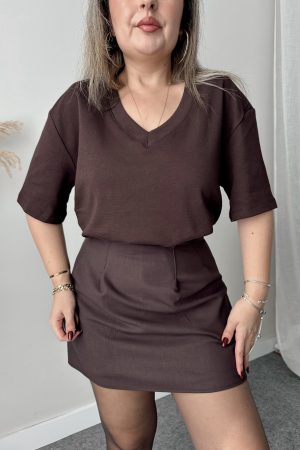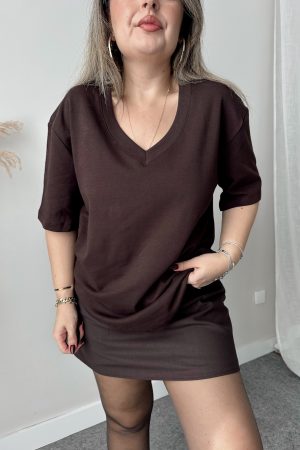 Acı Kahve V Yaka Çelik Premium Oversize Tshirt