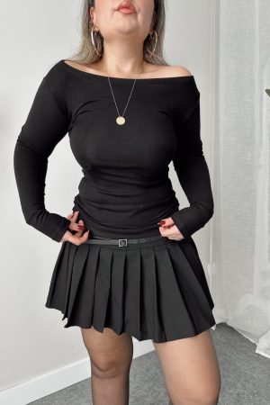 Siyah Ekstra Soft Kayık Yaka Viskon Bluz