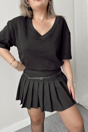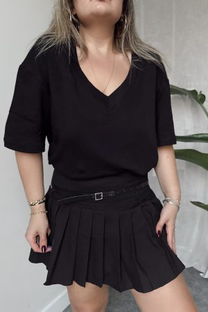 Siyah V Yaka Çelik Premium Oversize Tshirt