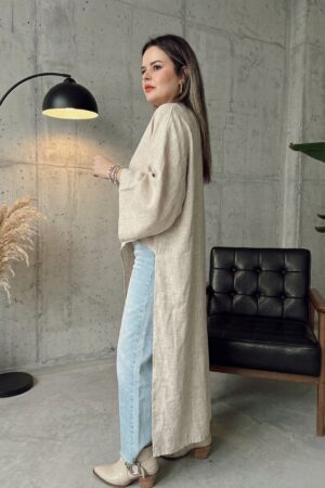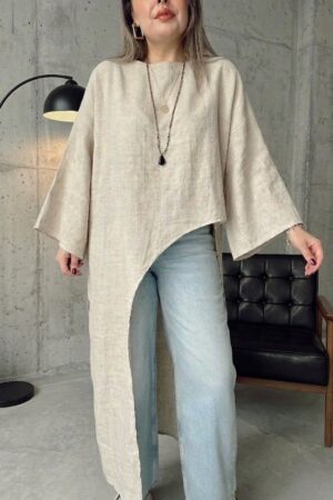 Kum Keten Asimetrik Tasarım Maxi Bluz