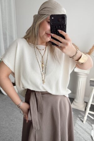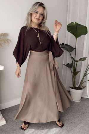 Kahve Pamuk Yarasa Kol Crop Merserize Bluz