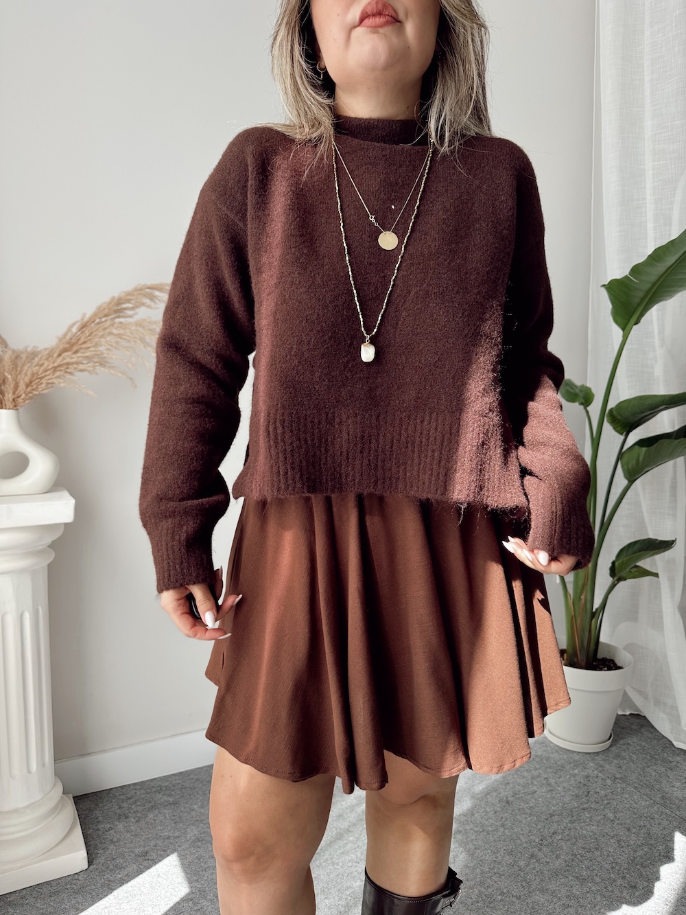 Ana SayfaÜST GİYİMTriko Acı Kahve Crop Kazak