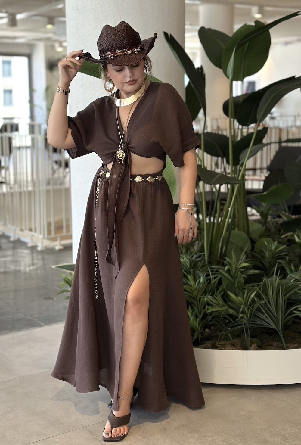 Acı Kahve Soft Müslin A Form Yırtmaçlı Etek