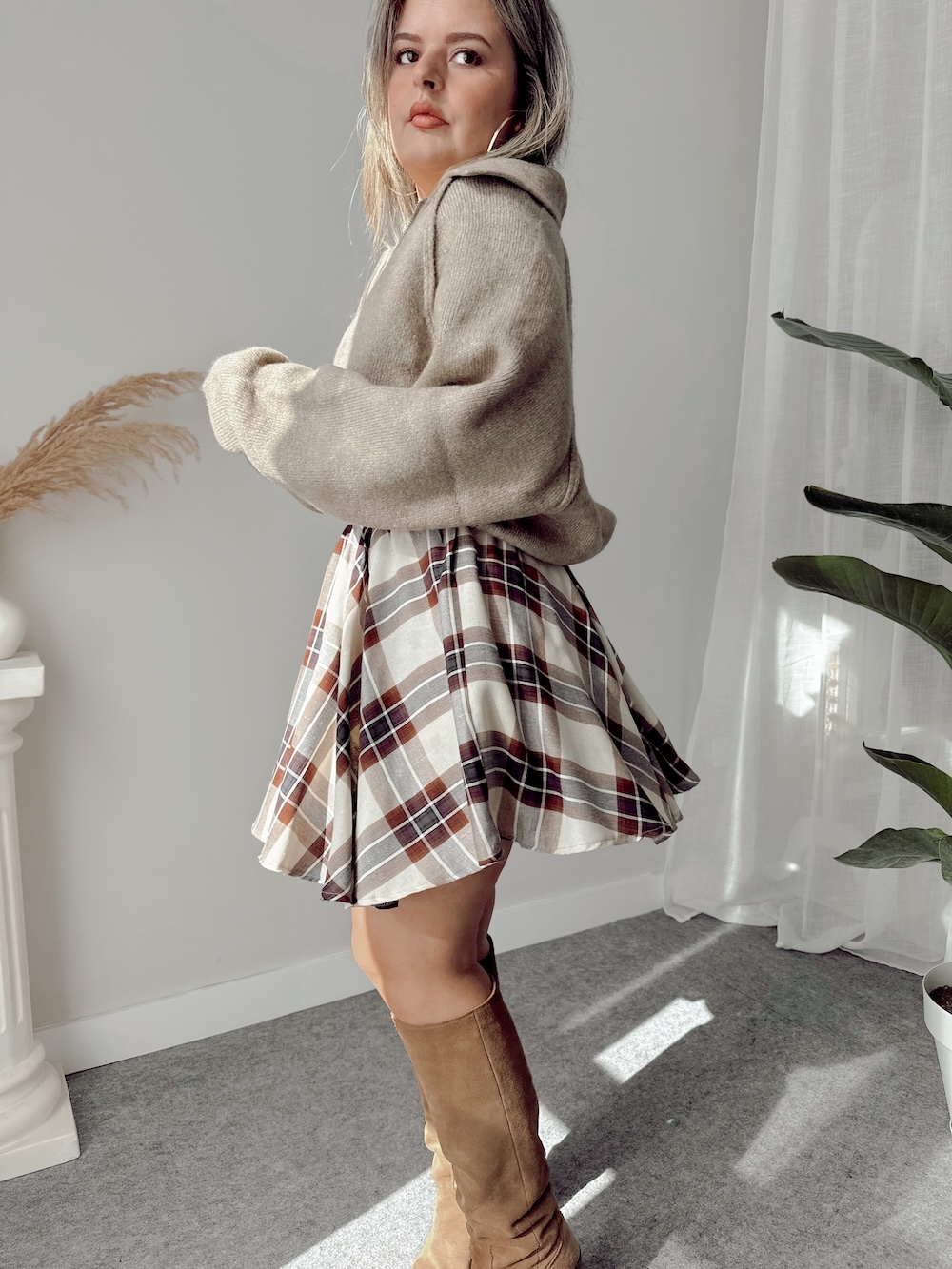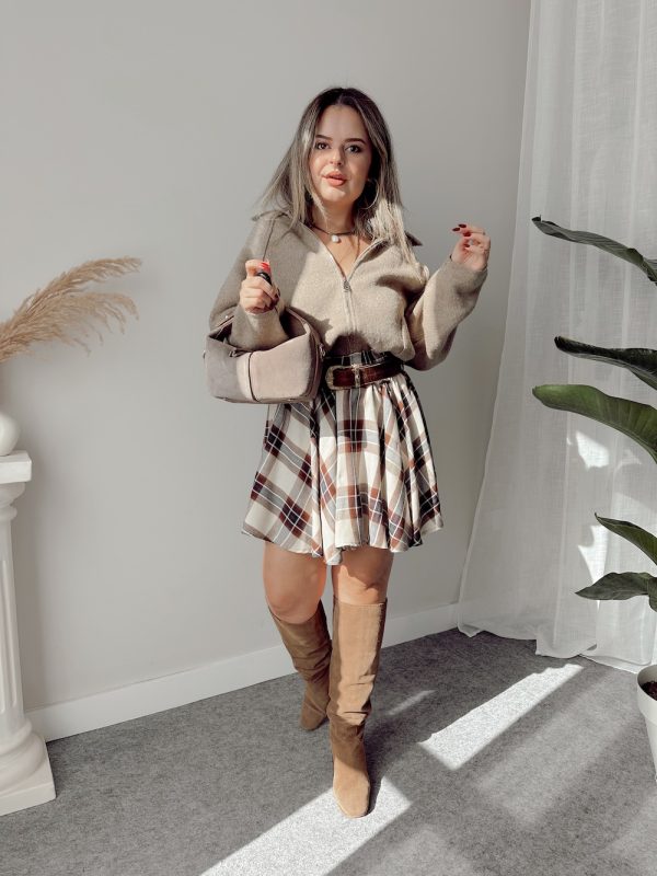 Bej Ekose Şort Etek