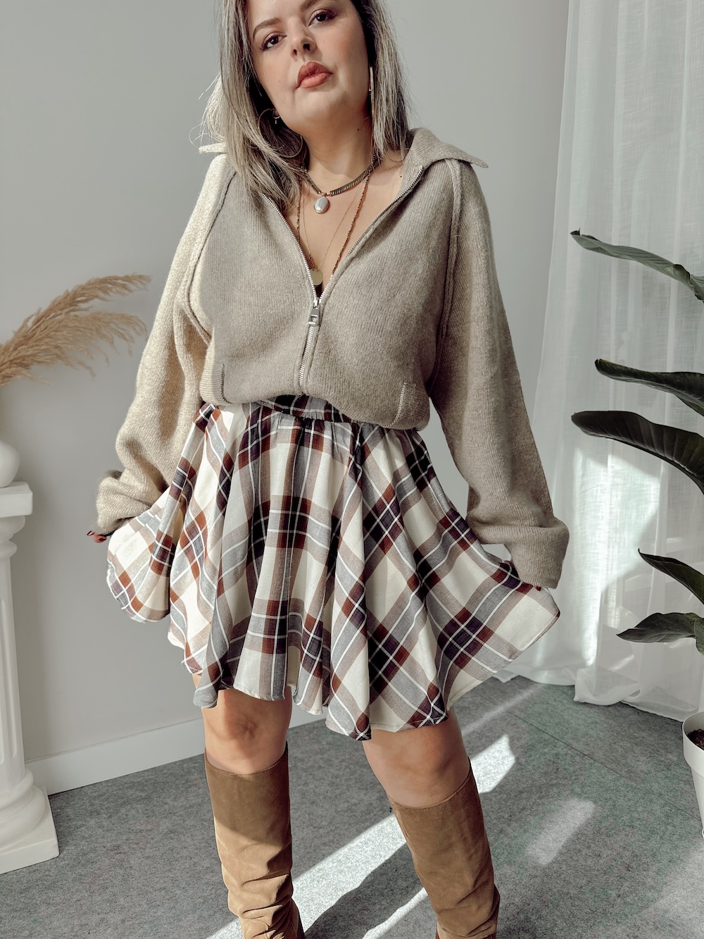 Ana SayfaALT GİYİMETEK Bej Ekose Şort Etek