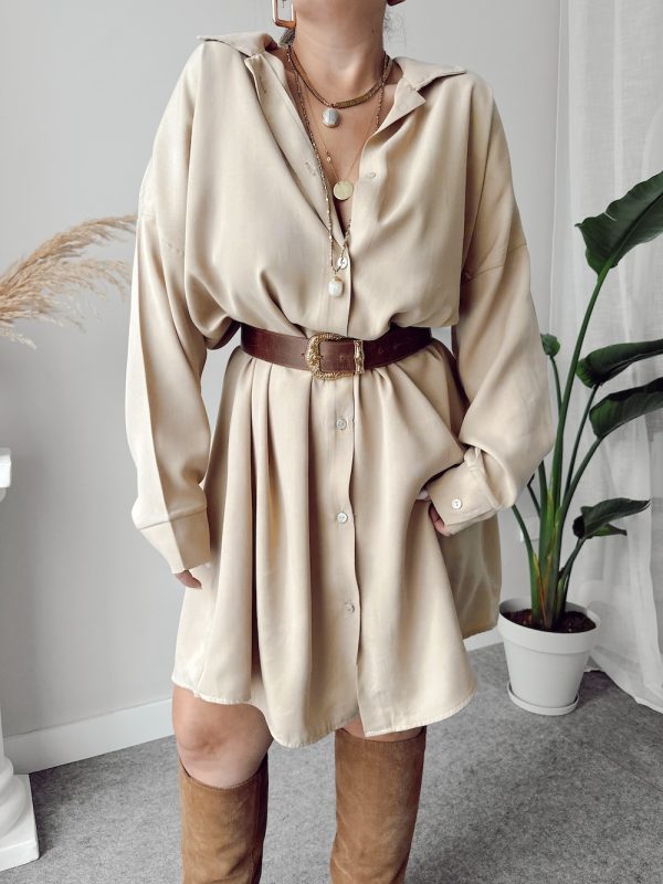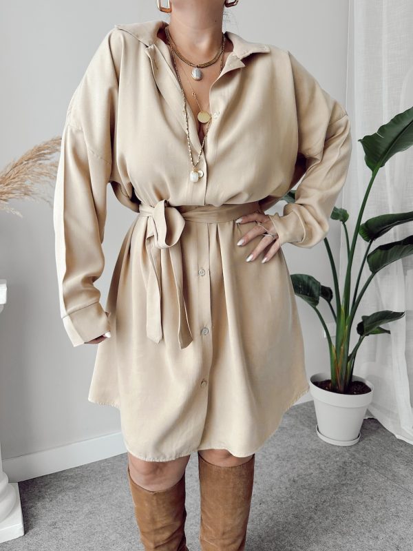 Ana SayfaELBİSE Bej Premium Tencel Gömlek Elbise