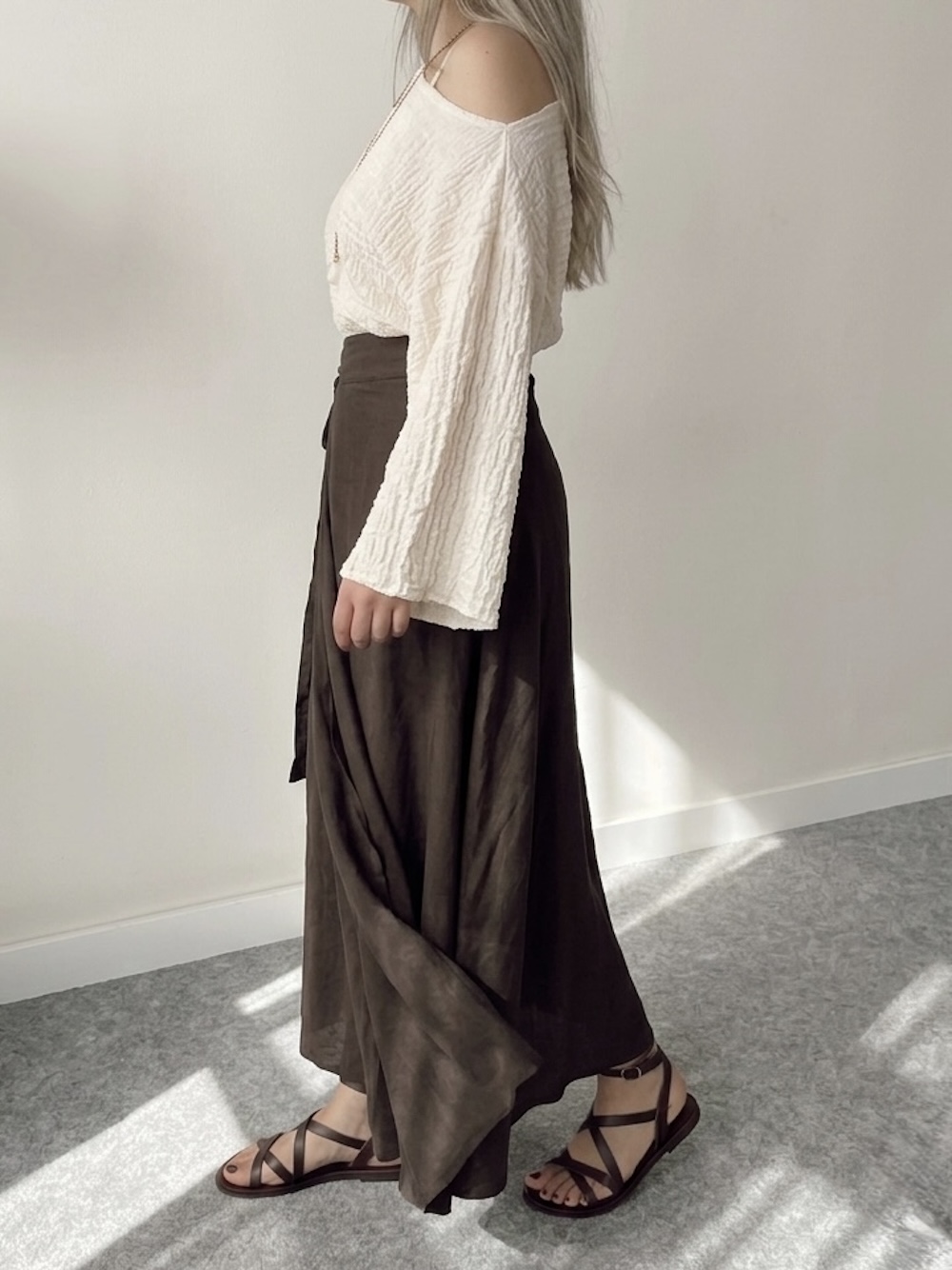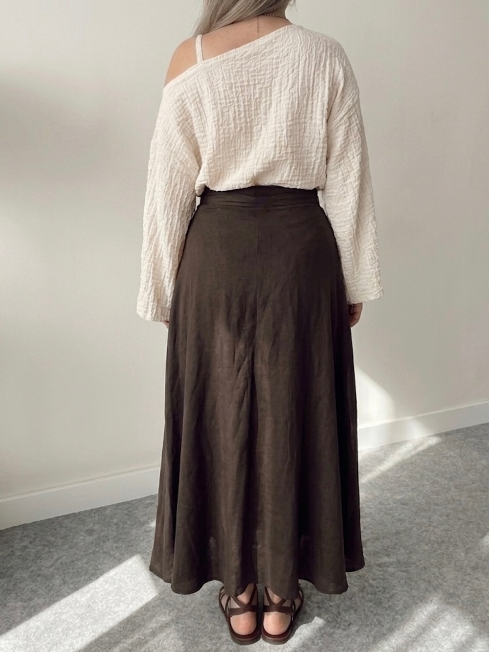 Kahve Keten A form Asimetrik Kruvaze Etek