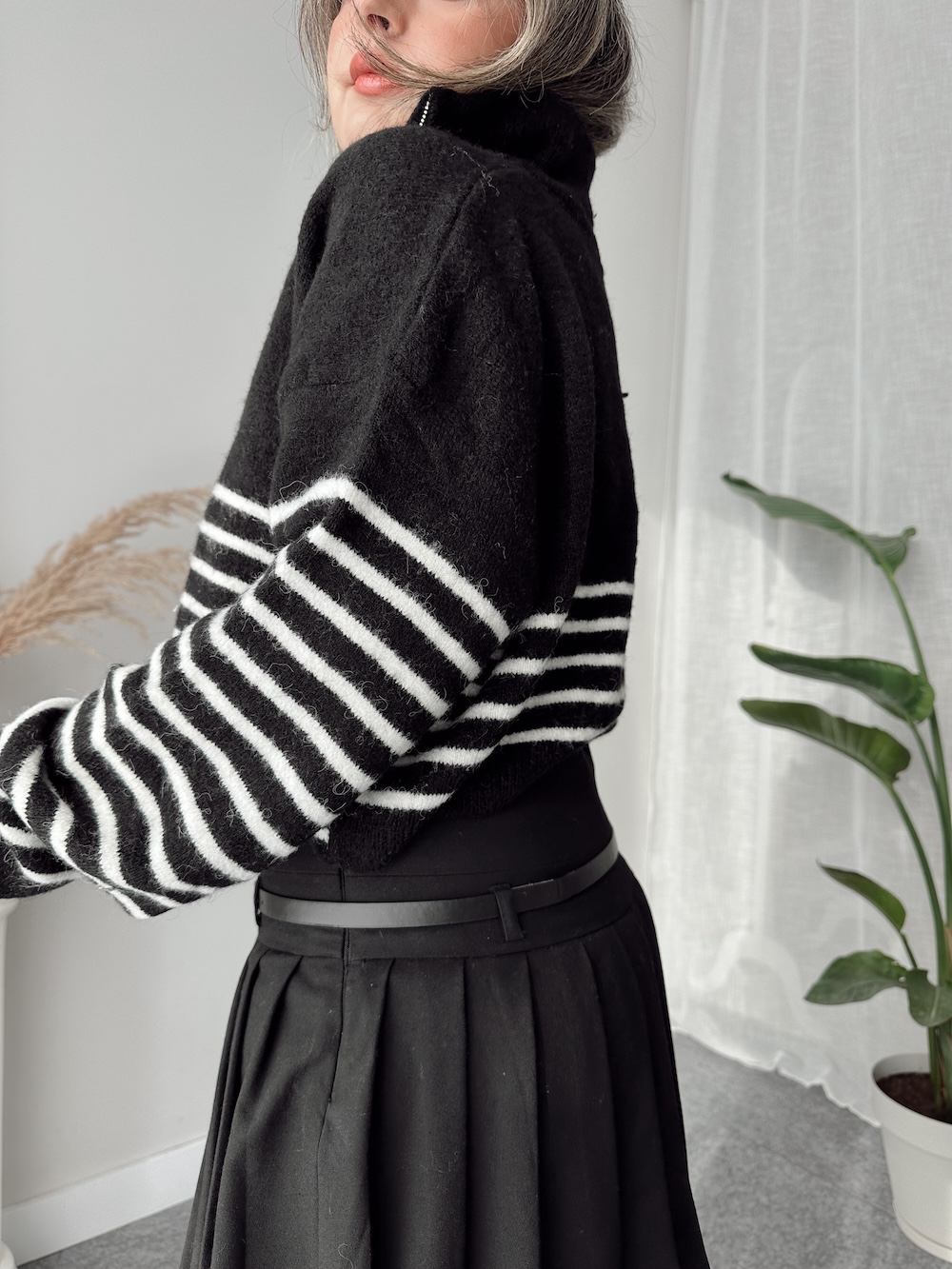 Ana SayfaÜST GİYİMTriko Çizgili Crop Kazak