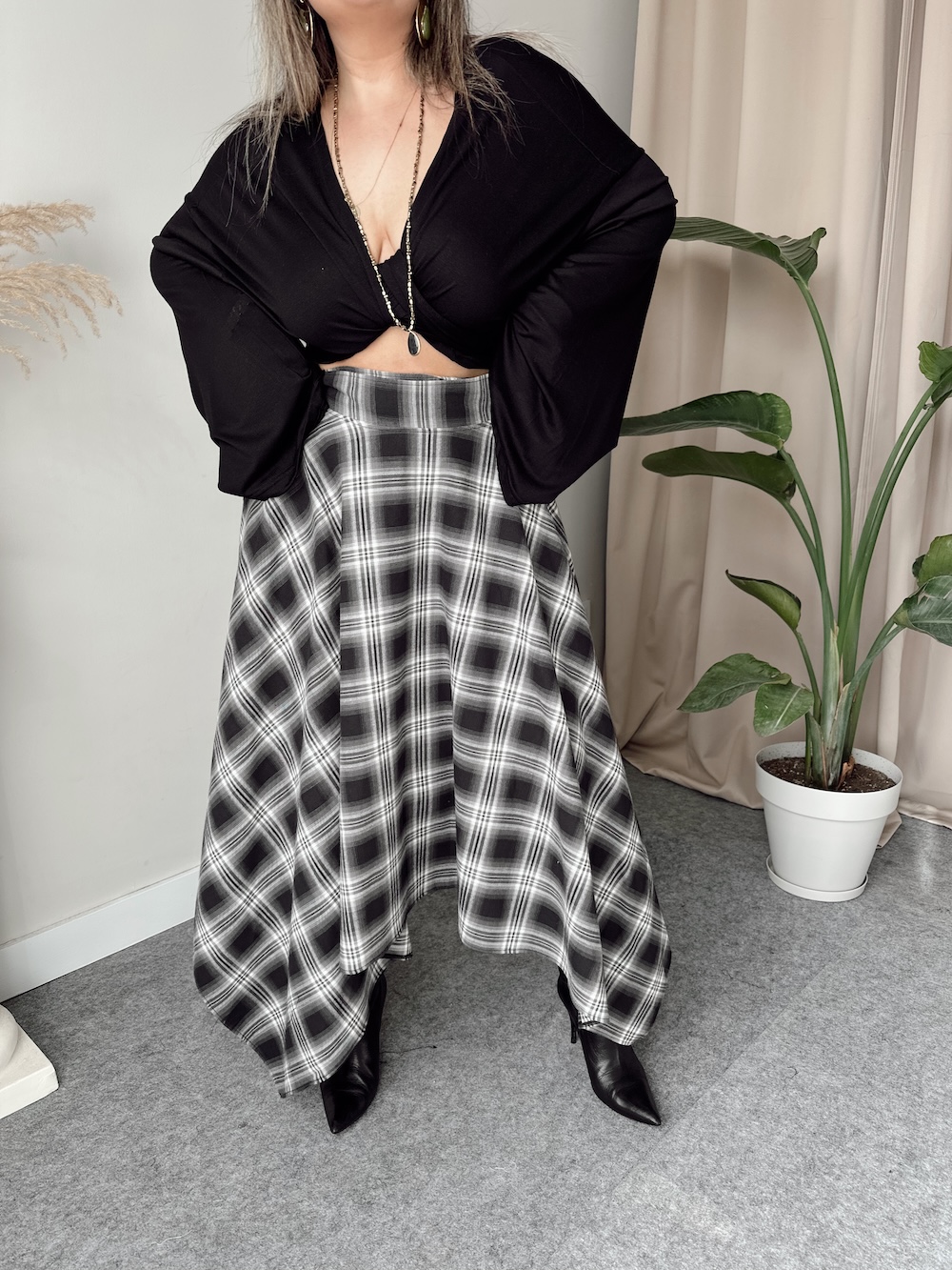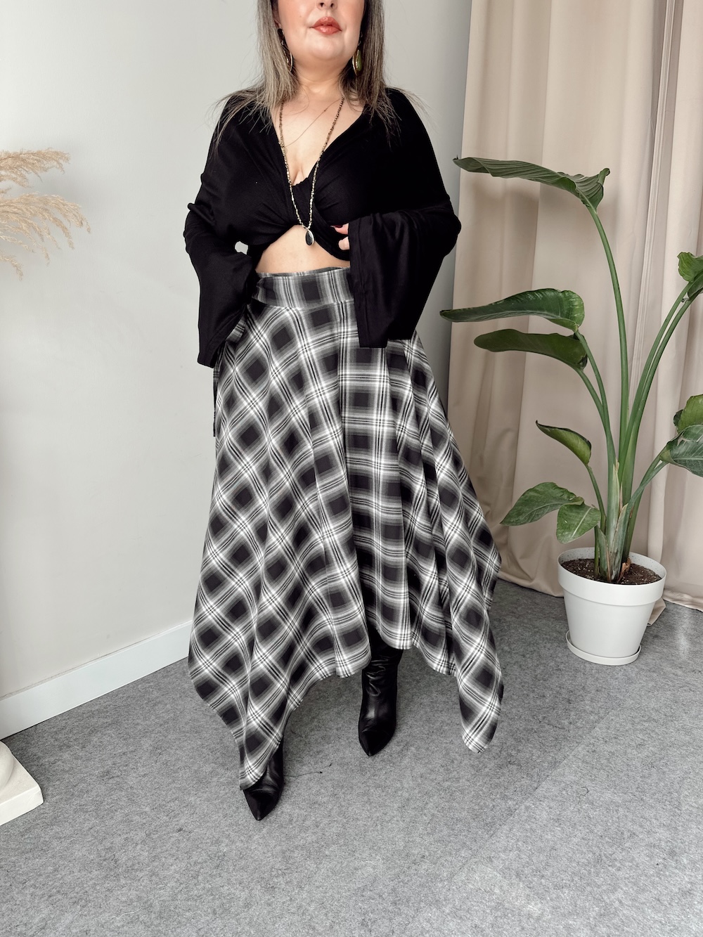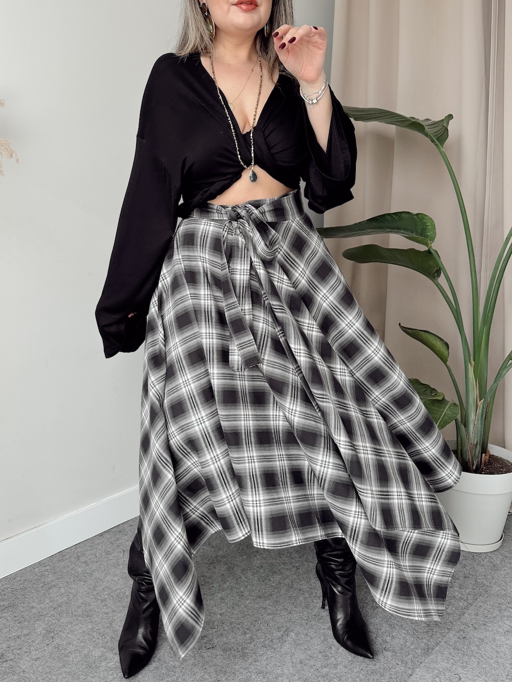 Ekose Pamuk Asimetrik Kruvaze Etek