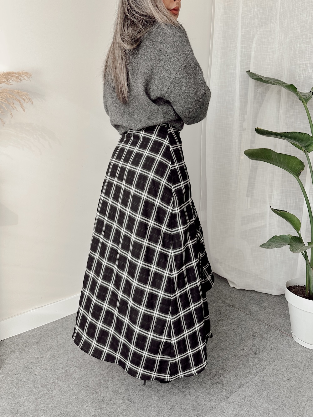 Ana SayfaALT GİYİMŞort Etek Ekose Siyah Midi Asimetrik Etek