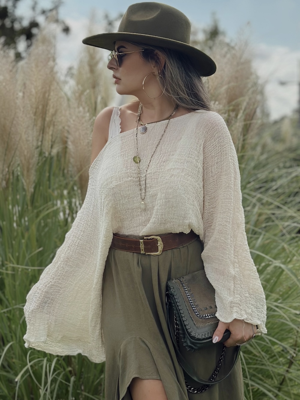 Faralya Keten Kayık Yaka Asimetrik Bluz | Premium Collection | 16 şubat pazartesi kargolanacaktır