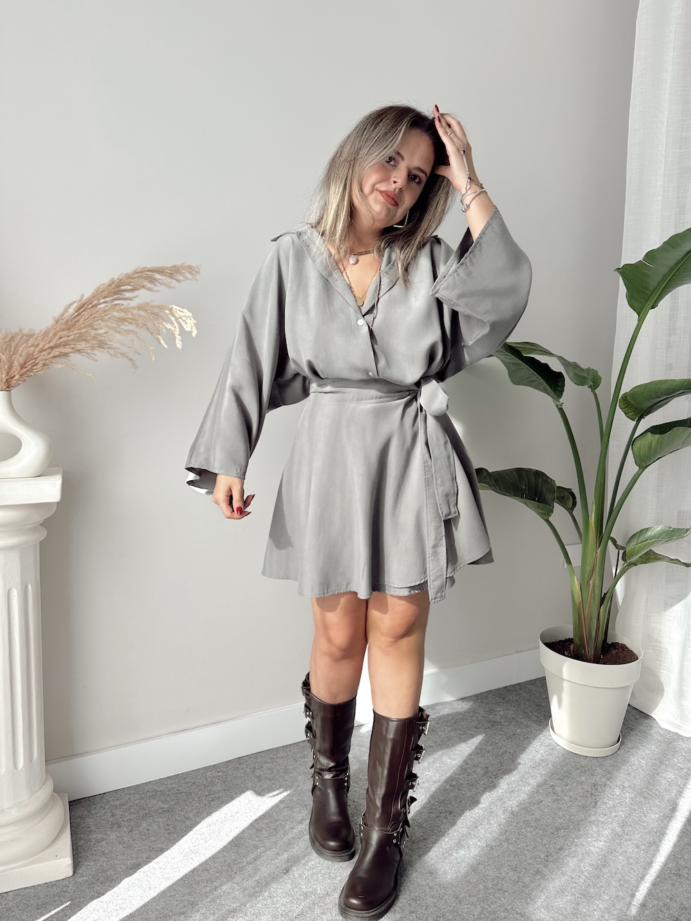Ana SayfaALT GİYİMETEK Gri Premium Tencel Kruvaze A form Mini Etek