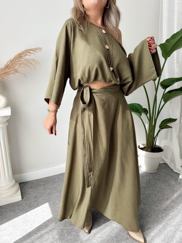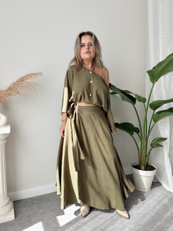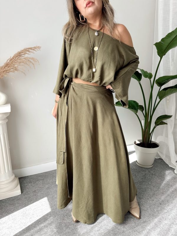 Haki Asimetrik A form Kruvaze Etek