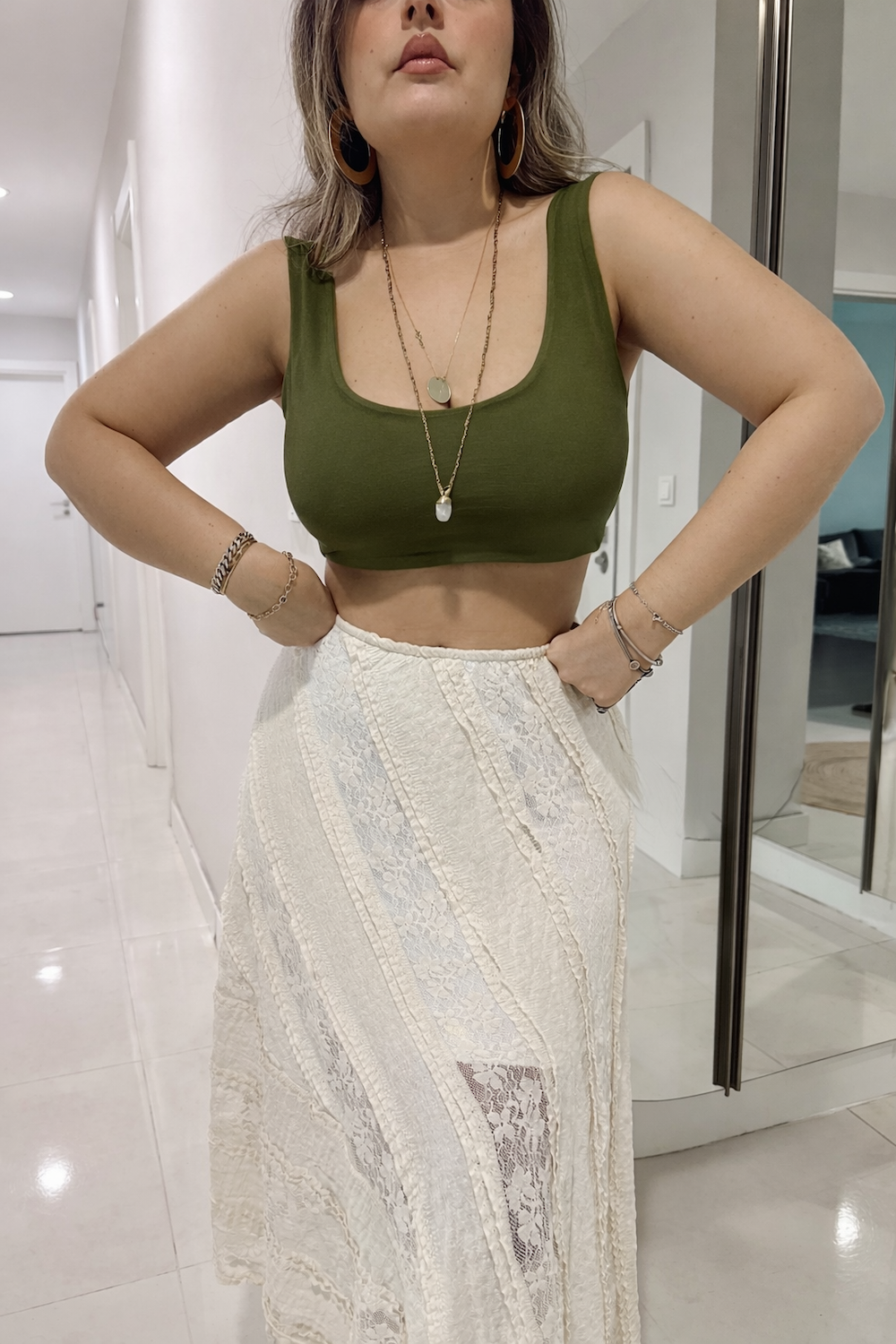 Haki Askılı Crop Top