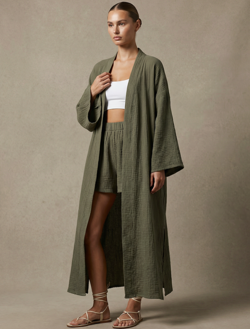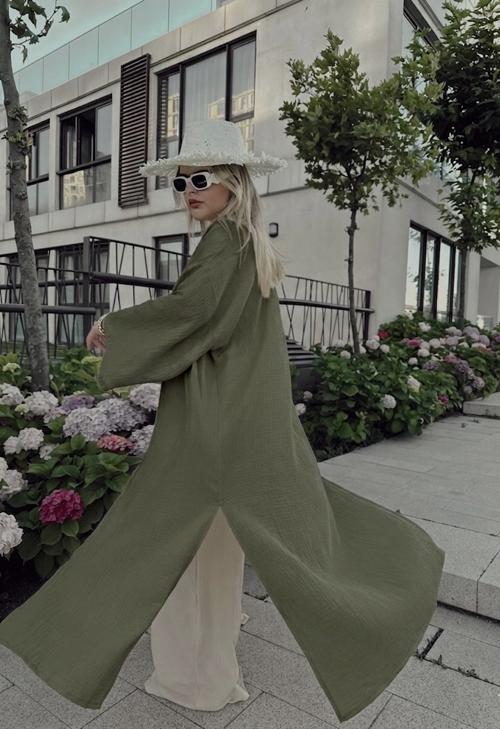 “Haki Organik Müslin Maxi Kimono” için yorum yapan ilk kişi siz olun