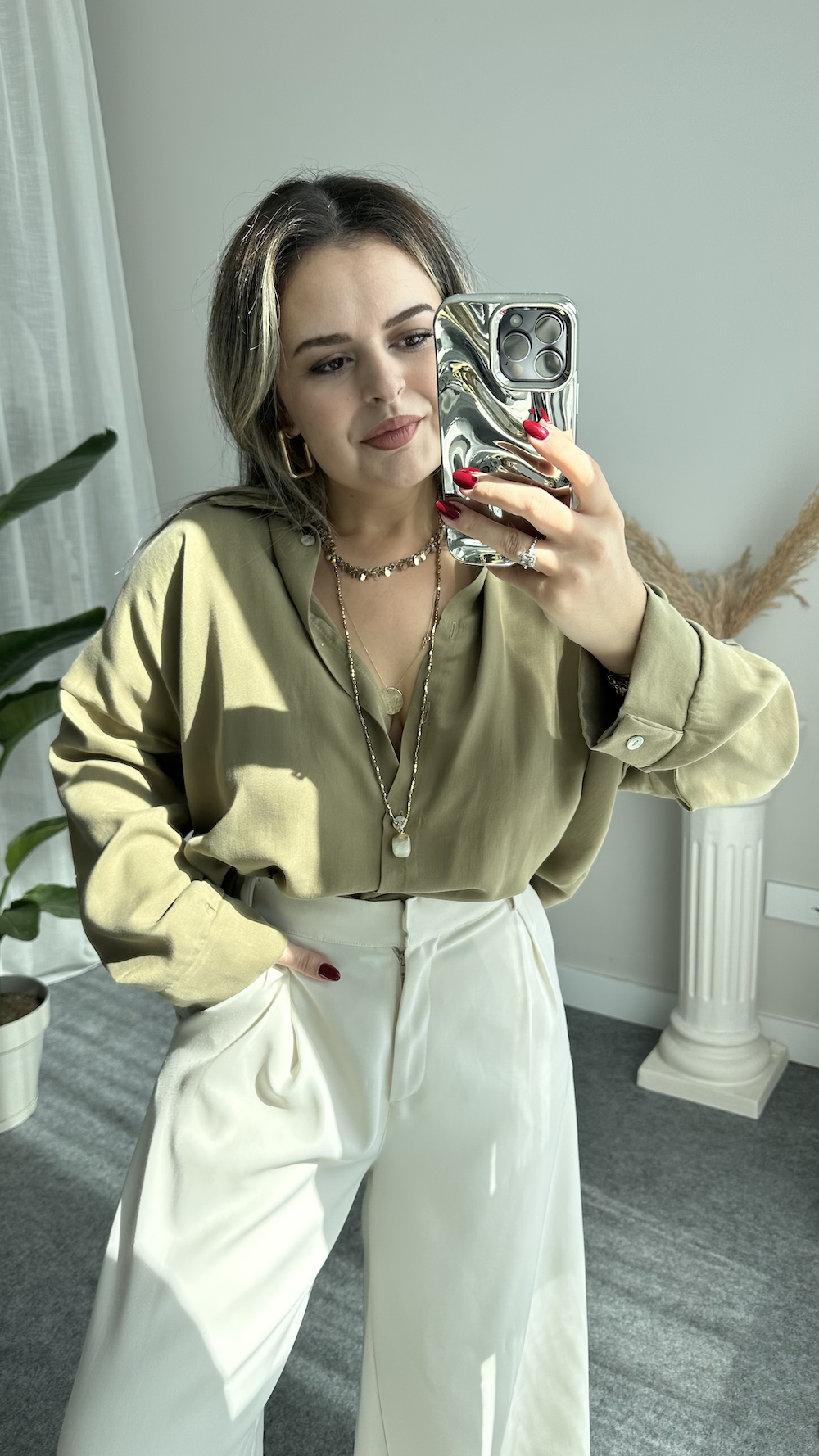 Haki Tencel Oversize Gömlek