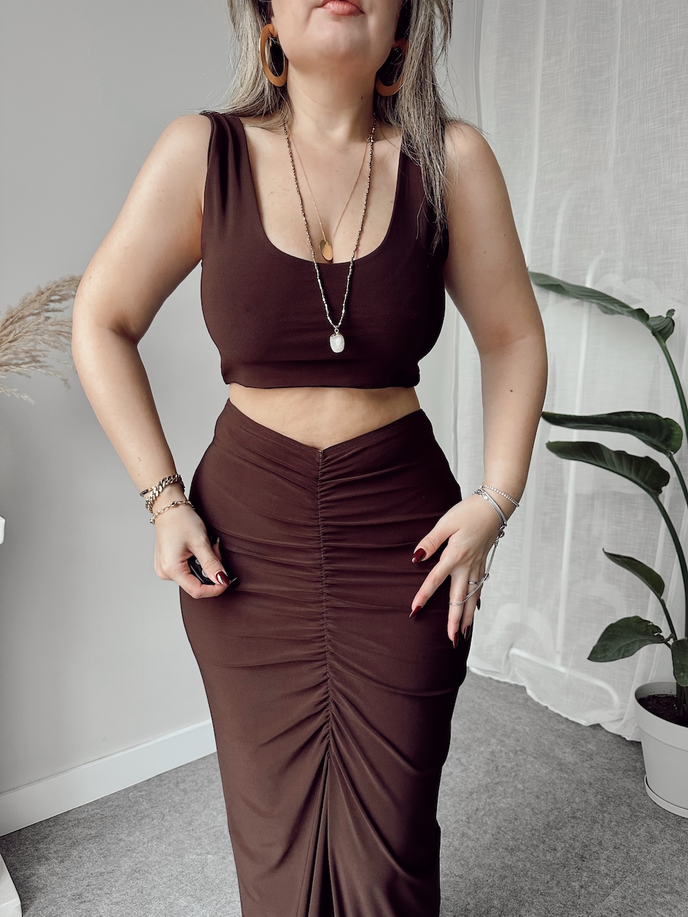 Ana SayfaALT GİYİMETEK Kahve Sandy Drapeli Maxi Etek