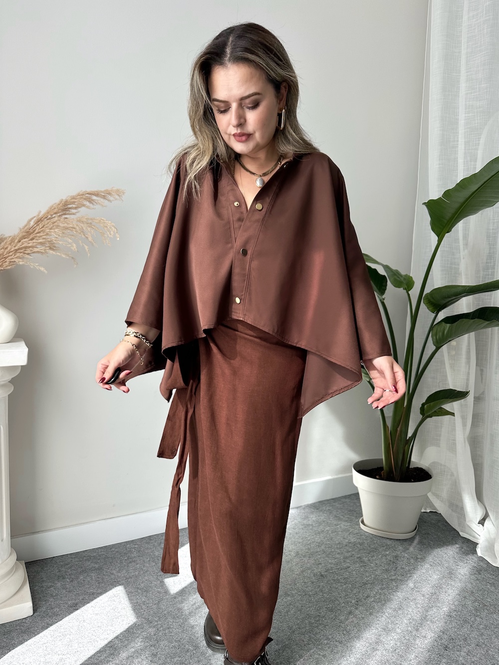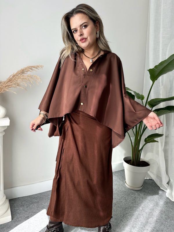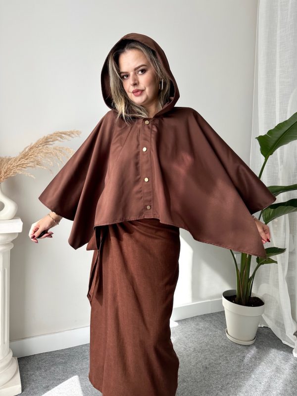 Kahve Yağmurluk Su İtici Kapüşonlu Pelerin