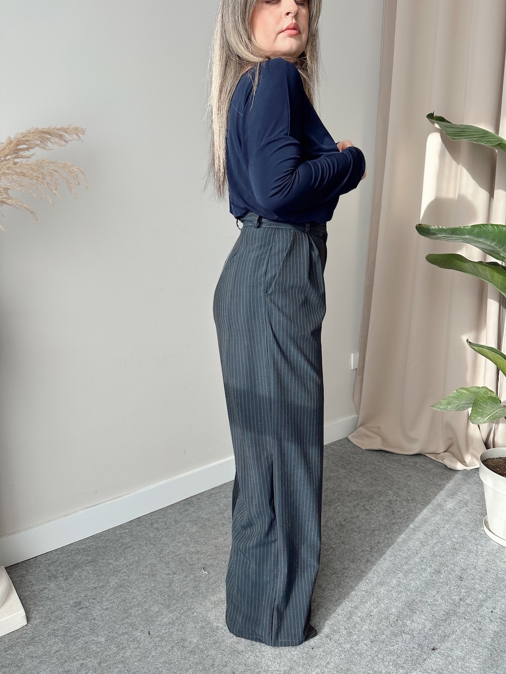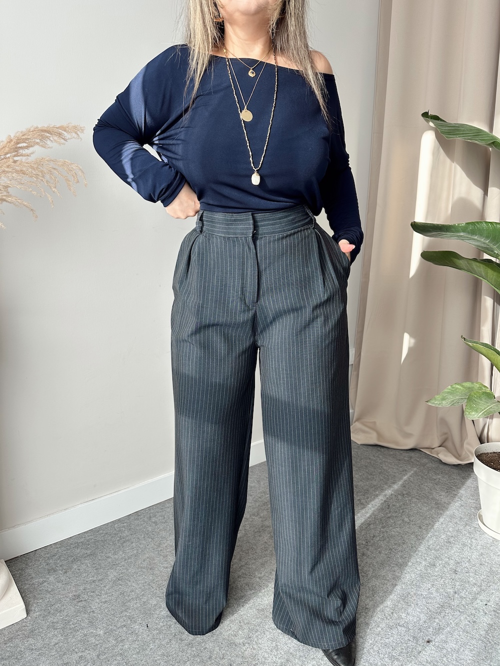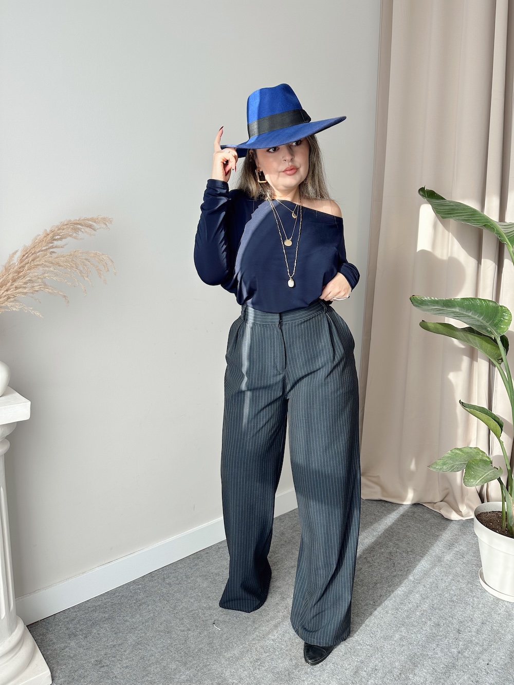 “Lacivert Çizgili Premium Yün Karışımlı Pensli Palazzo Pantolon” için yorum yapan ilk kişi siz olun