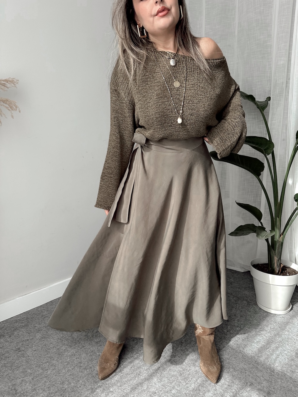 “Haki Keten Kruvaze A Form Etek” için yorum yapan ilk kişi siz olun