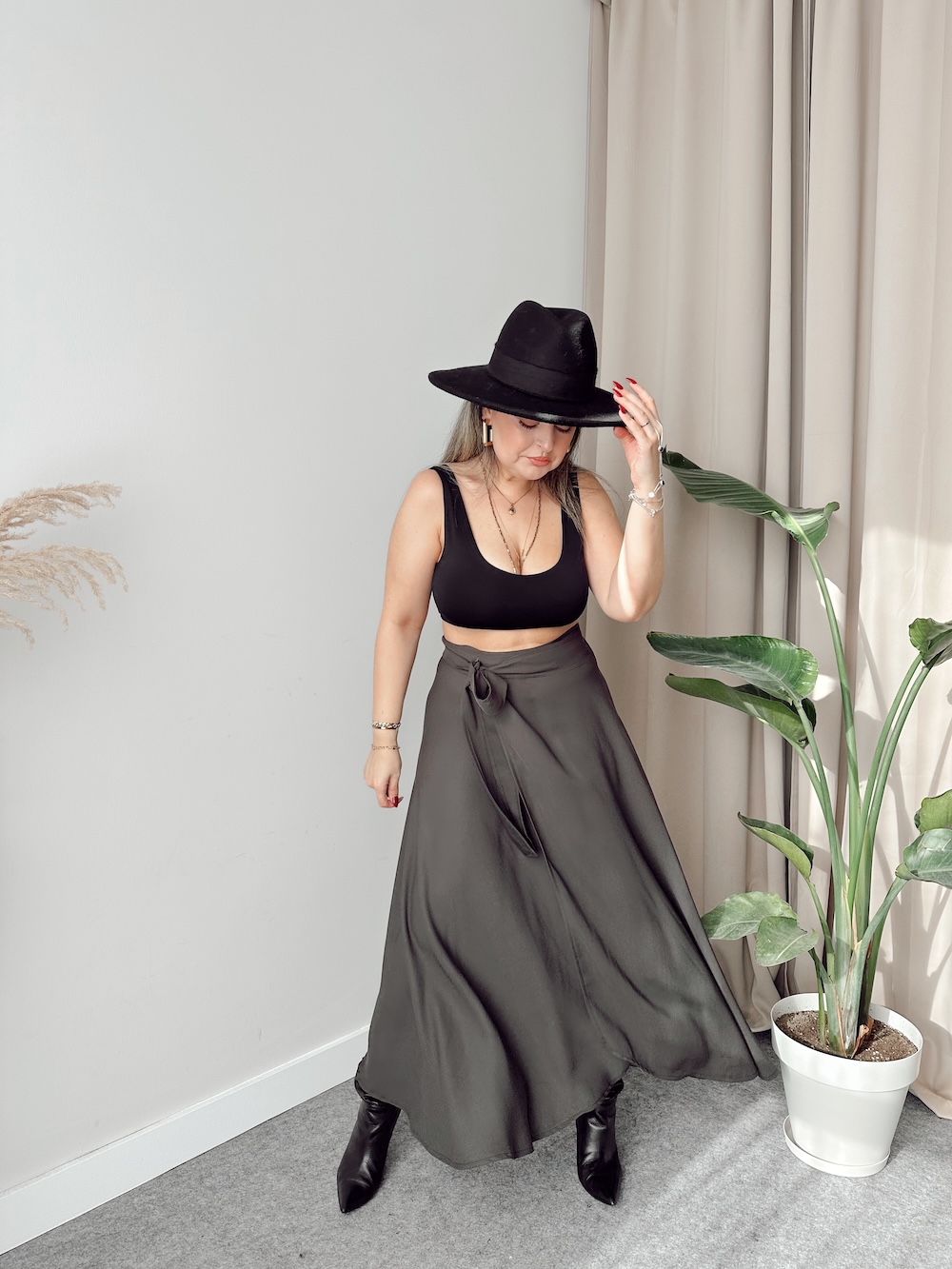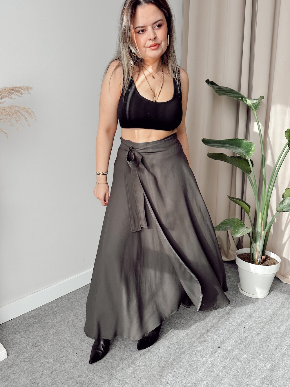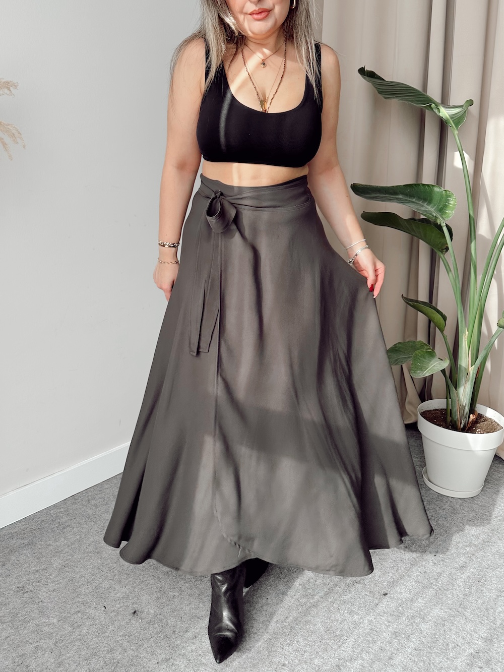 Pes Kahve Kruvaze A Form Asimetrik Etek