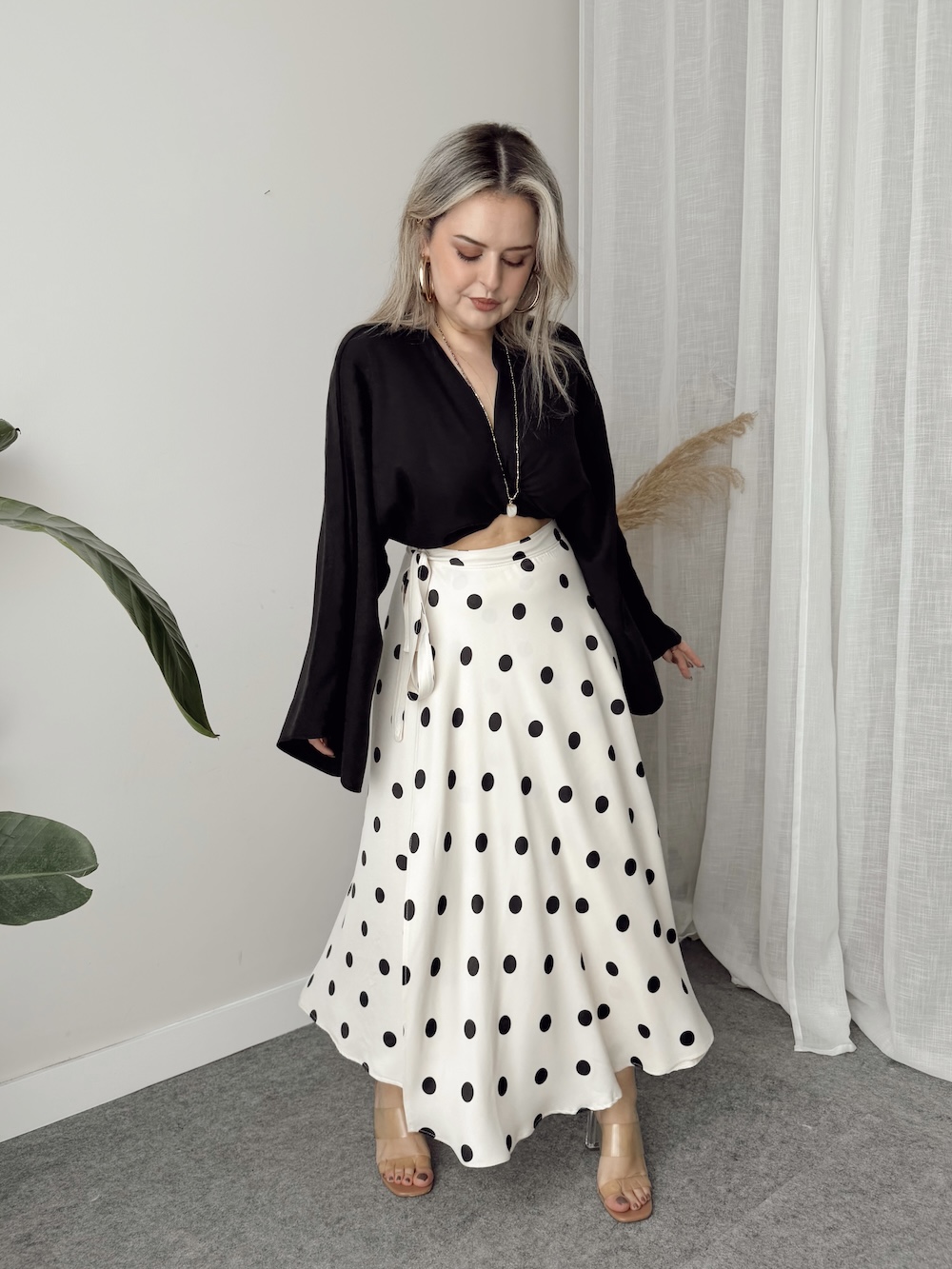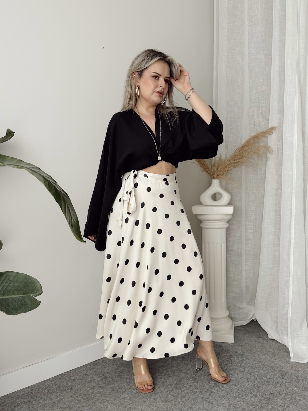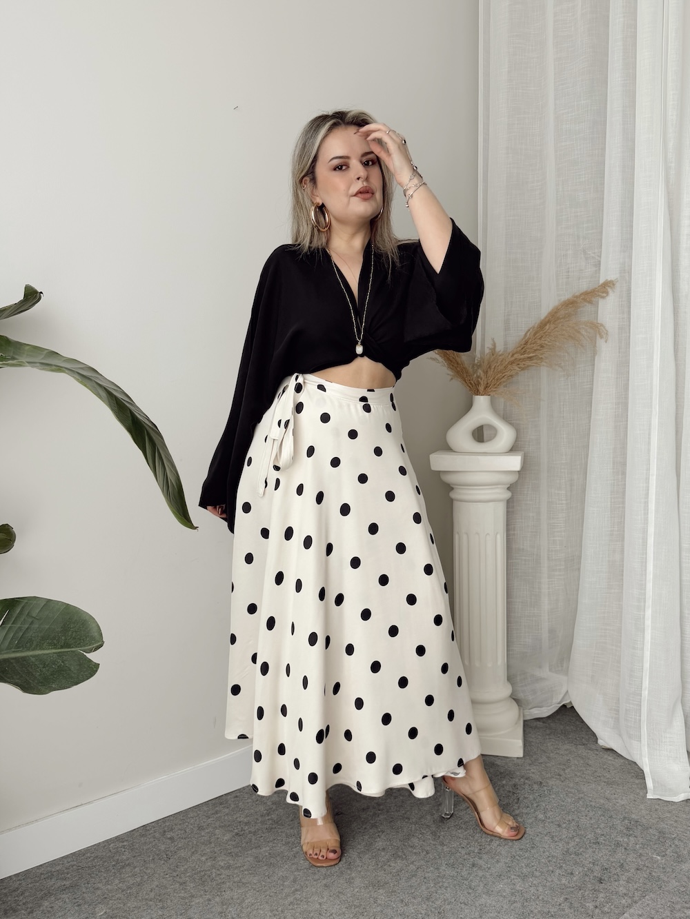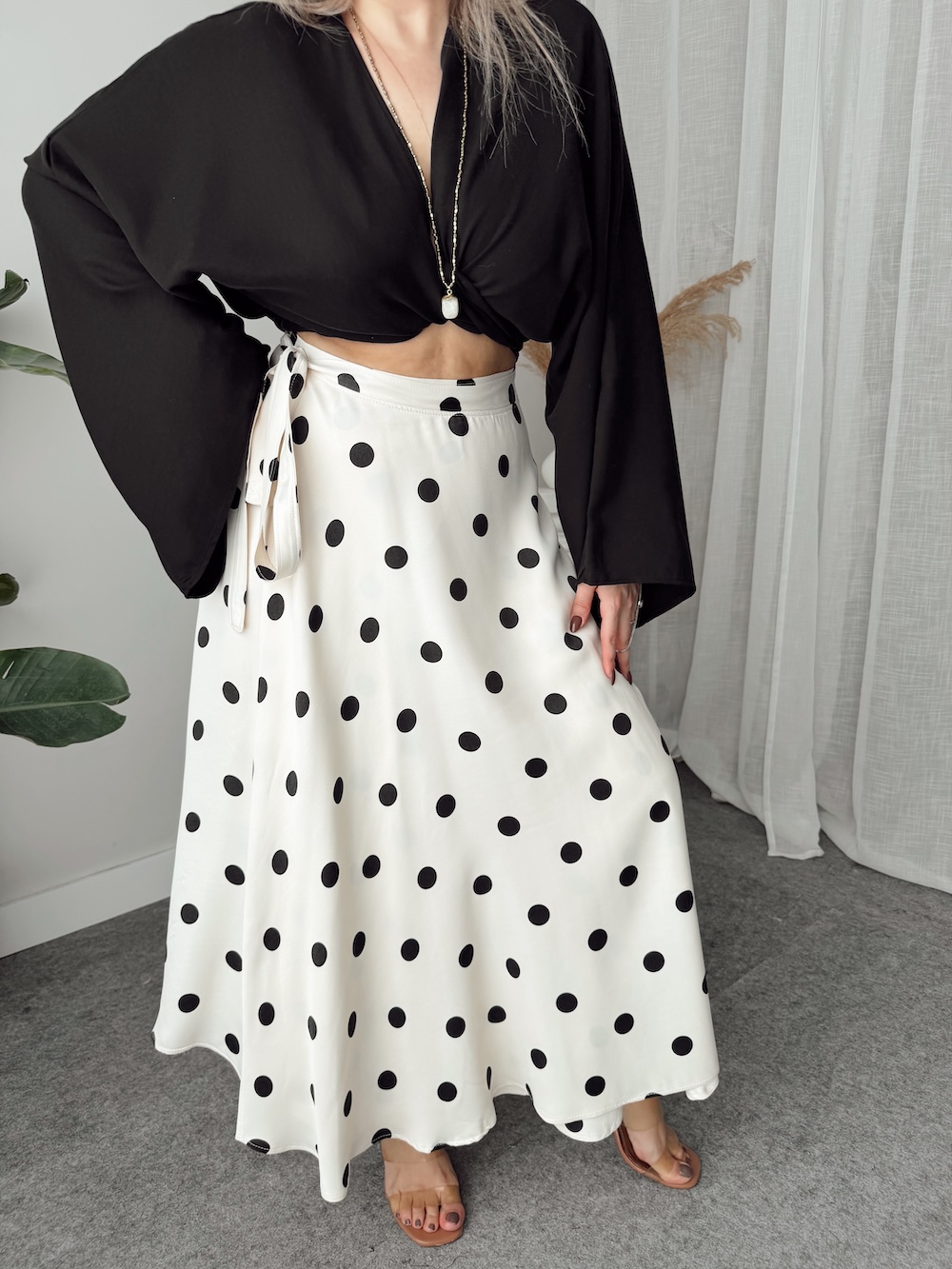Puantiye Viskon Saten Kruvaze A Form Etek