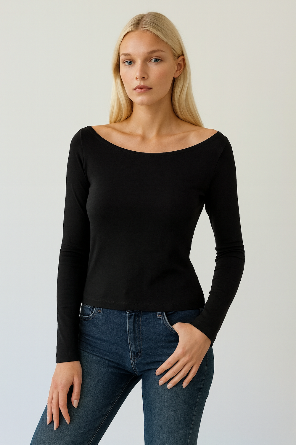 ekstra soft yumuşacık dokuda kayık yakalı tam boy bluz