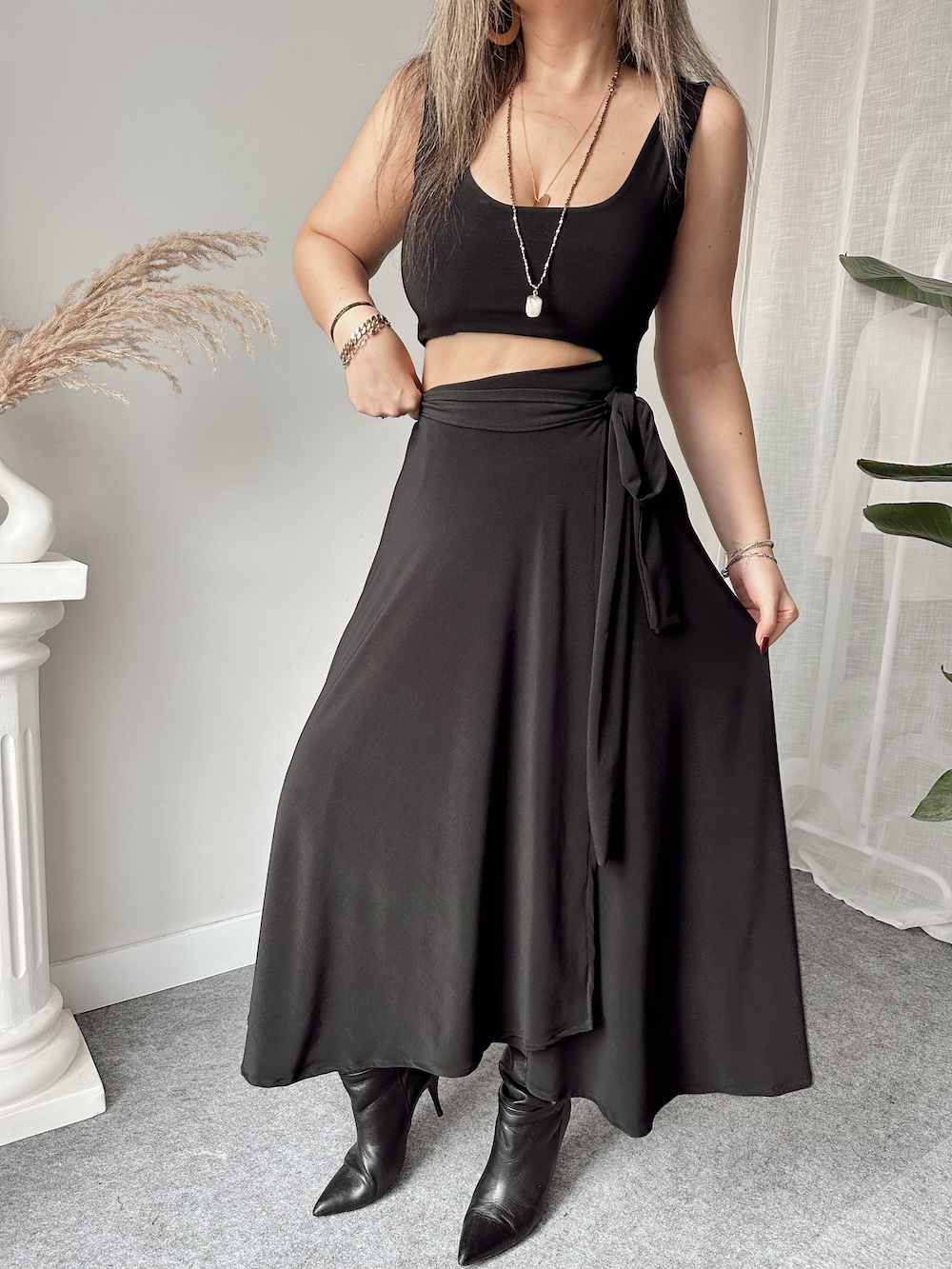 esnek sandy kumaştan bağlamalı kruvaze modeldir