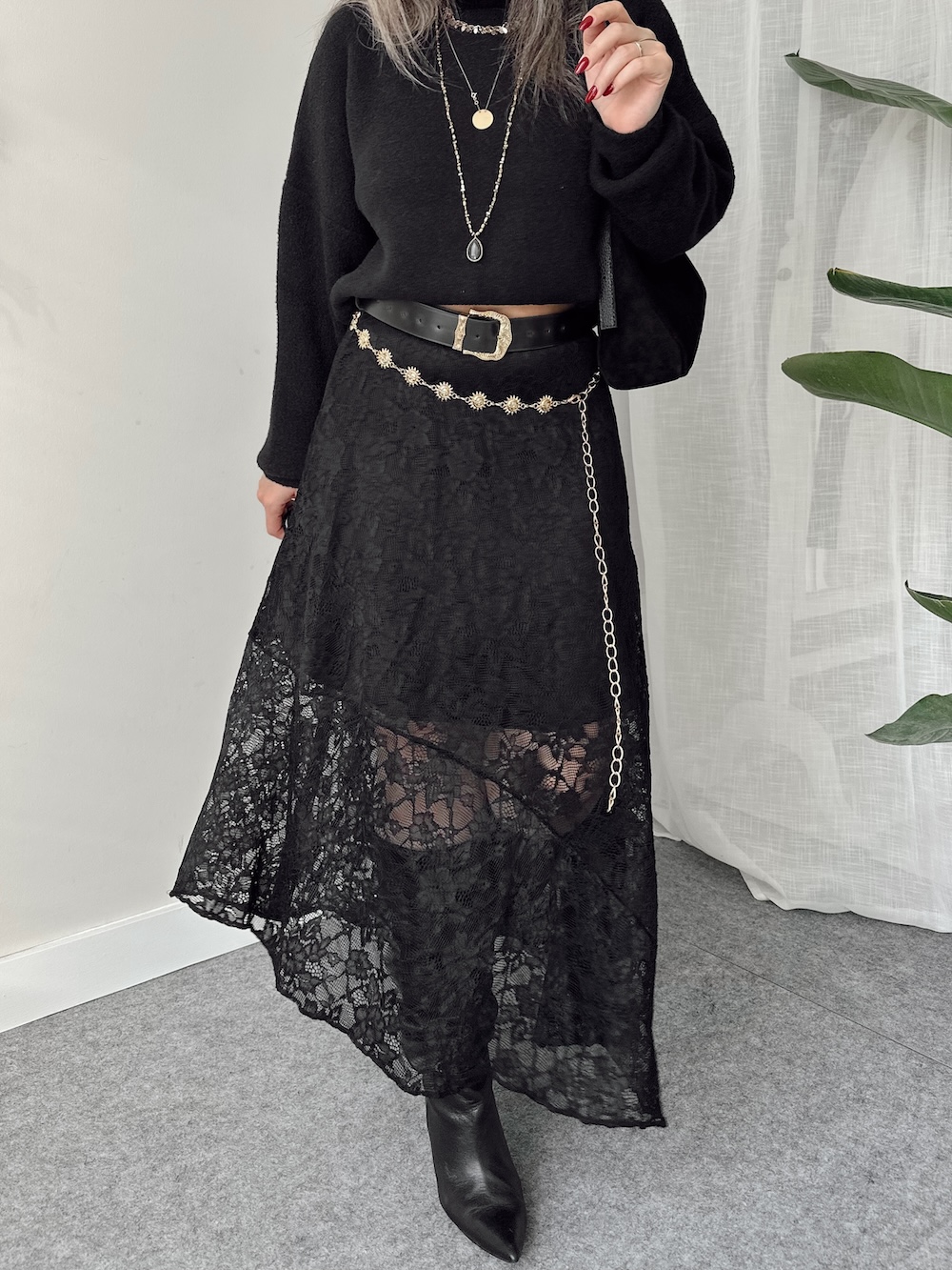 Astarlı asimetrik 36-38-40 beden uyumlu geniş a kesim beli 1 cm lastikli midi etek