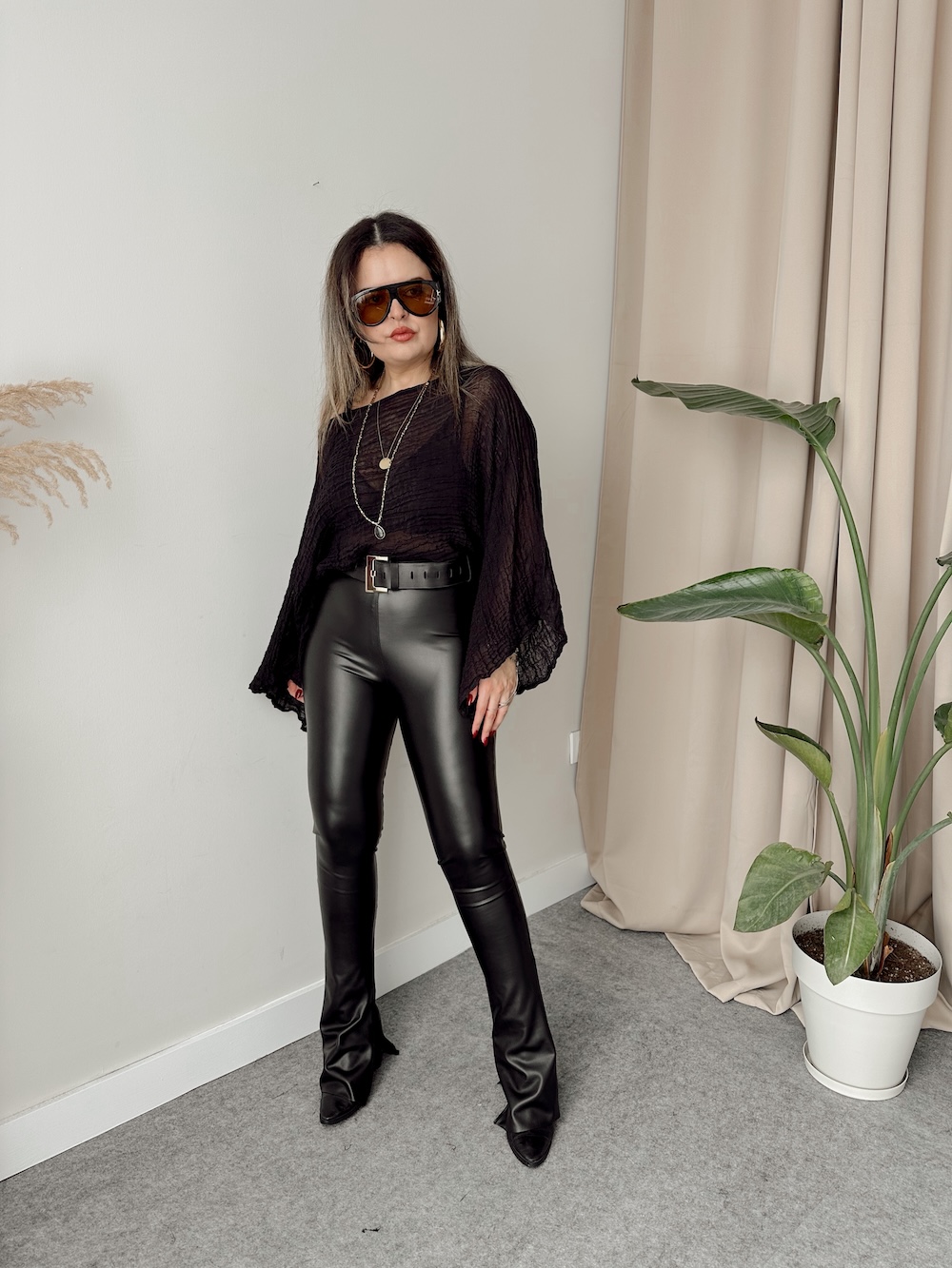 Siyah Suni Deri Flare Paça Tayt