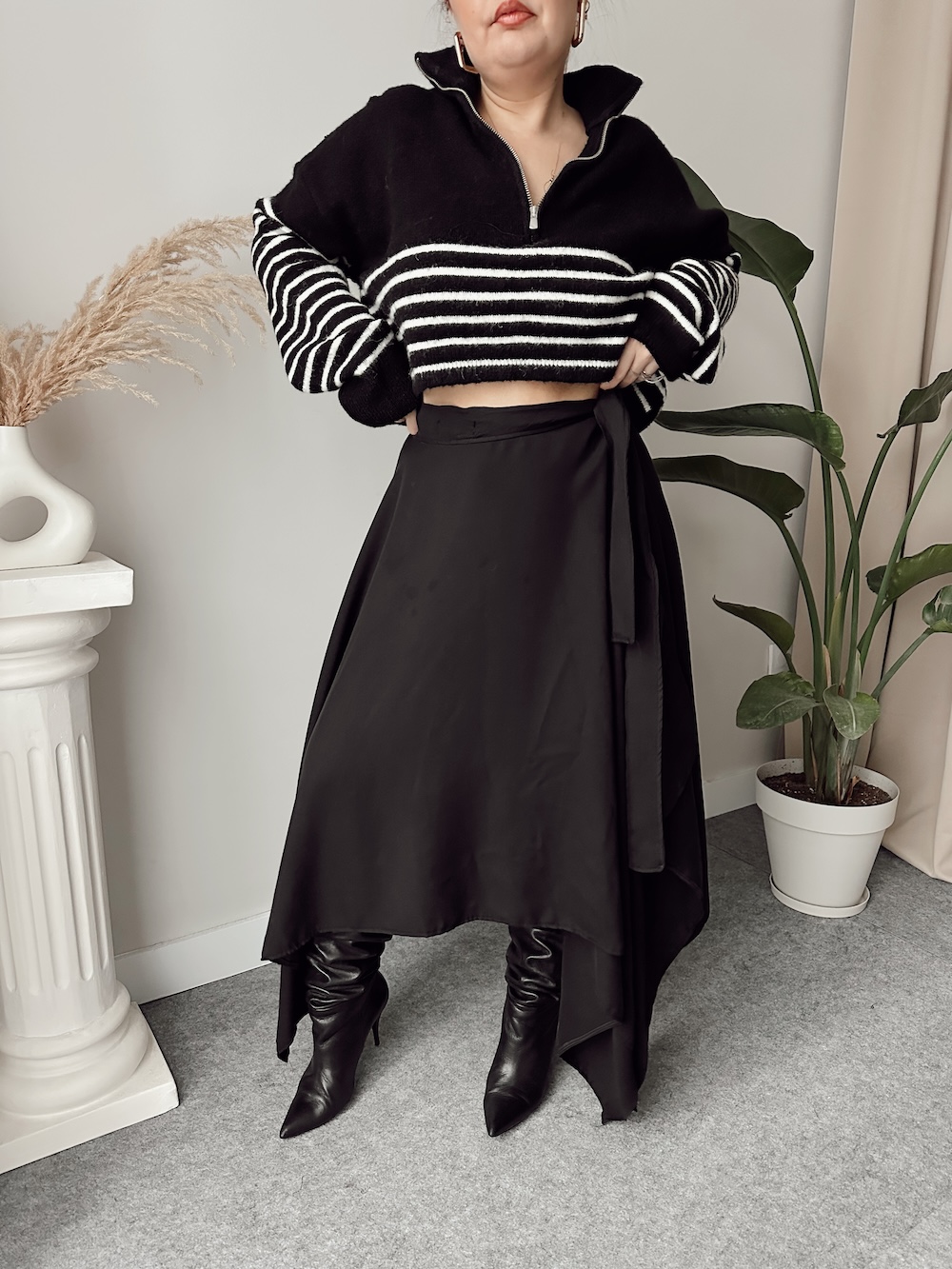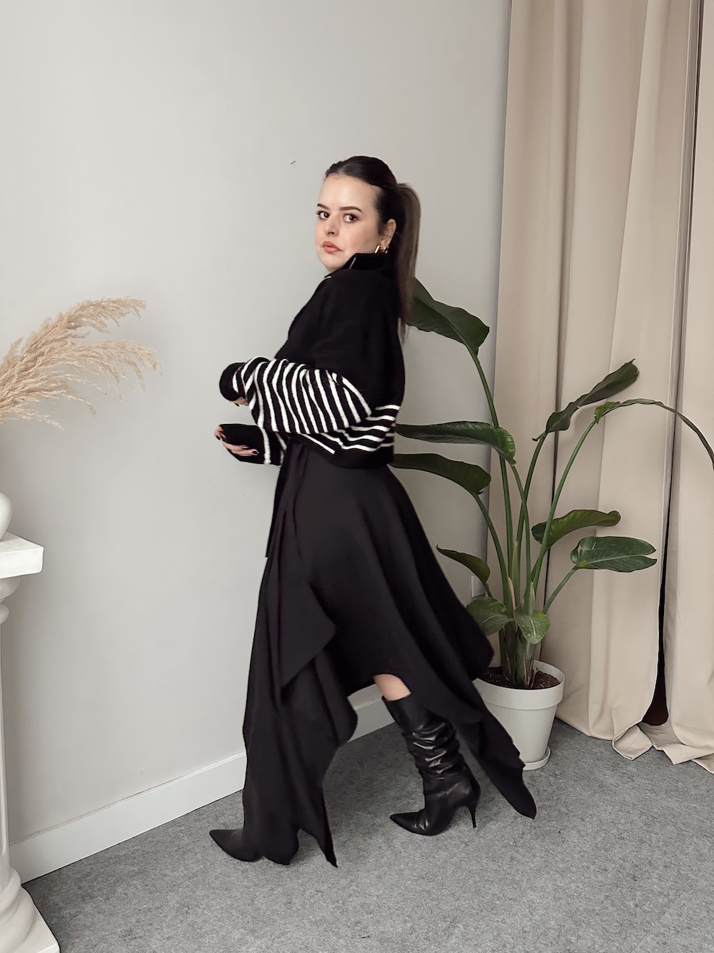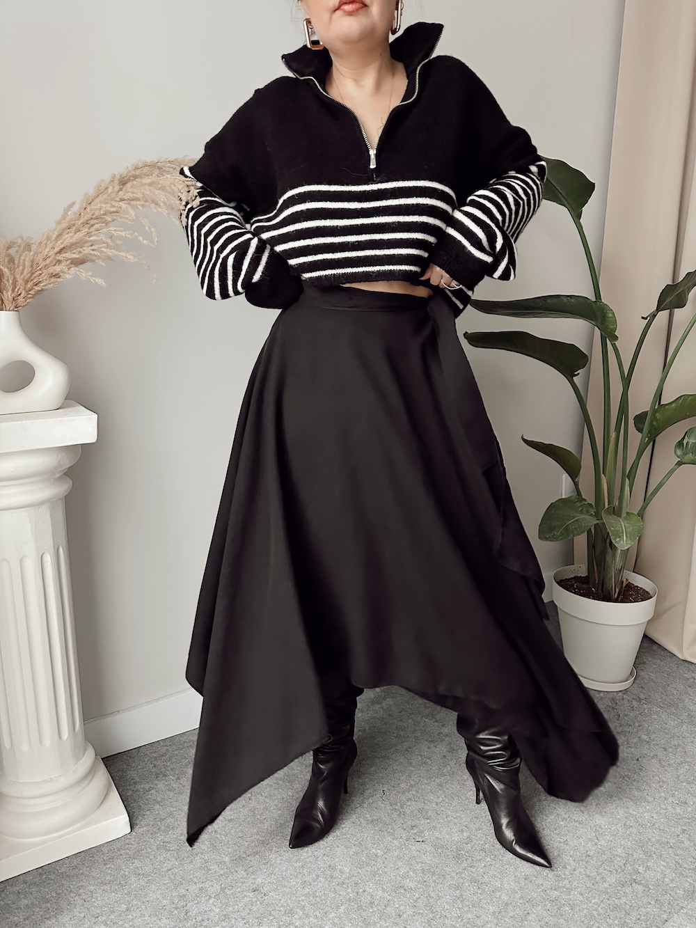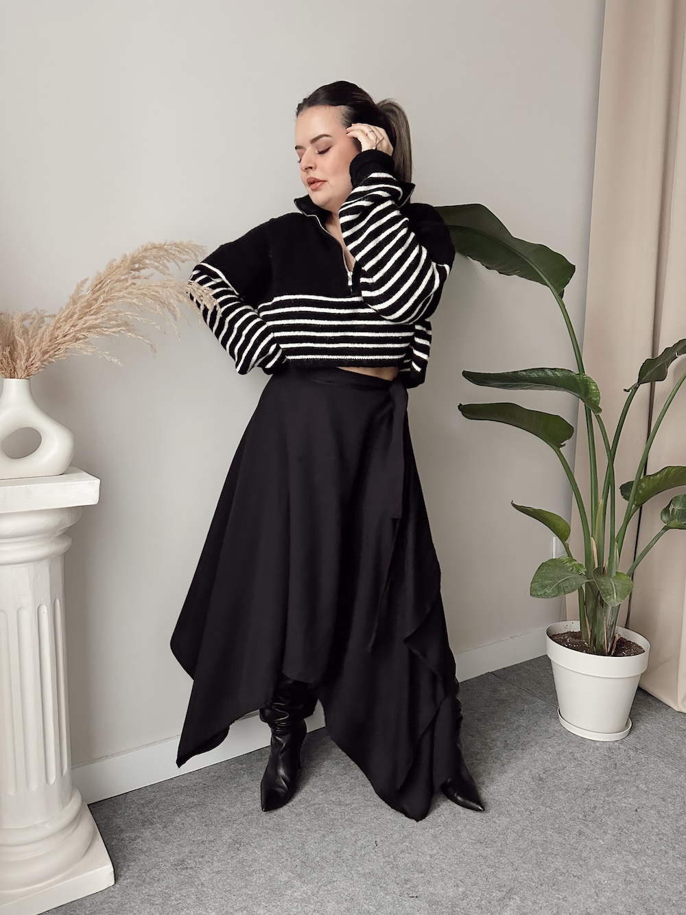 Siyah Tensel Asimetrik Kruvaze Etek | ÖN SİPARİŞTİR 16 ŞUBAT PAZARTESİ KARGOLANACAKTIR