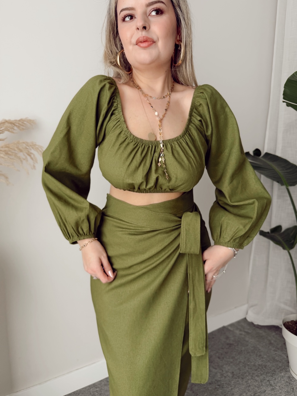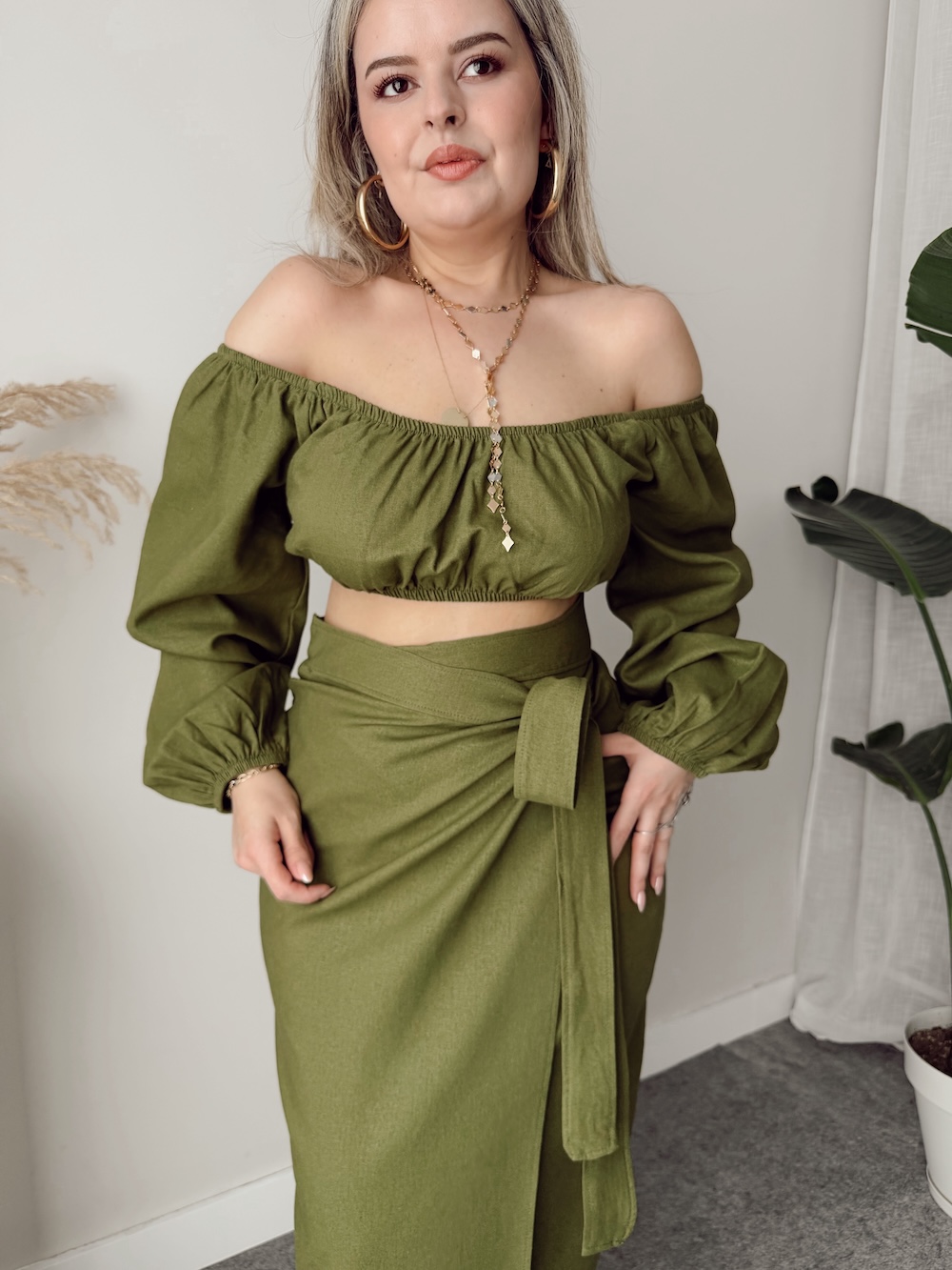 Yeşil Keten Off Shoulder Büstiyer